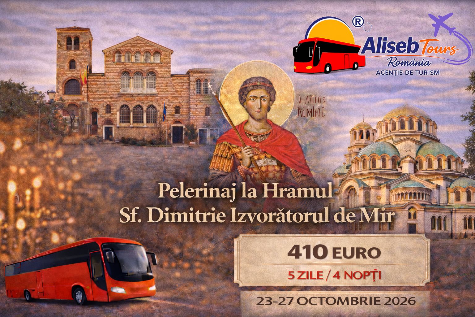 Pelerinaj Hramul Sf. Dimitrie Izvorâtorul de mir Ziua 1 – 23 octombrie Îmbarcarea în autocar se face din Municipiul Iași…